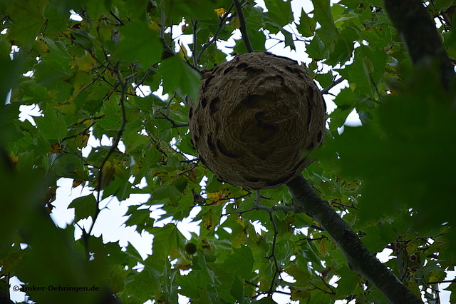 Ein Auftauchen der Asiatischen Hornisse im Hohenloher Raum befürchteten die Imker schon lange. Ende September 2025 wurde in der Öhringer Platanenallee ein Nest der Asiatischen Hornisse von einer Anwohnerin entdeckt. Diese invasive Hornissenart ist nicht nur eine Bedrohung für Imkerei, Obst- und Weinbau, sondern auch für die Bevölkerung. Wenn die Hornissen sich oder ihr Nest durch den Menschen angegriffen fühlen, greifen sie oft auch im Schwarm an. Die Stadtverwaltung Öhringen bat den Imkerverein um Hilfe bei der Entfernung des Nests.