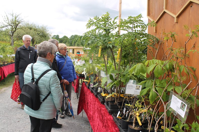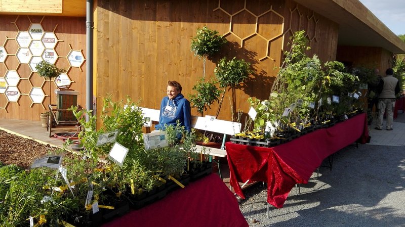 Am Imkerpavillon auf der Landesgartenschau in Öhringen verkaufte er 3 Tage lang seine selbst gezogenen Pflanzen. Hier konnte man sich mit unzähligen Sorten eindecken und auf seine 30jährige Erfahrung vertrauen. Gehölze sind gut geeignet, Trachtlücken zu schließen. Bienenweide lässt sich damit am nachhaltigsten verbessern. Allerdings haben Bäume den größten Platzbedarf. „Aber über einen schönen Hausbaum, der duftet, lichten Schatten spendet und die Bienen erfreut, wie der Kork- oder Blasenbaum, sollte man nachdenken.“, schreibt Jaesch in seinem online-Katalog.