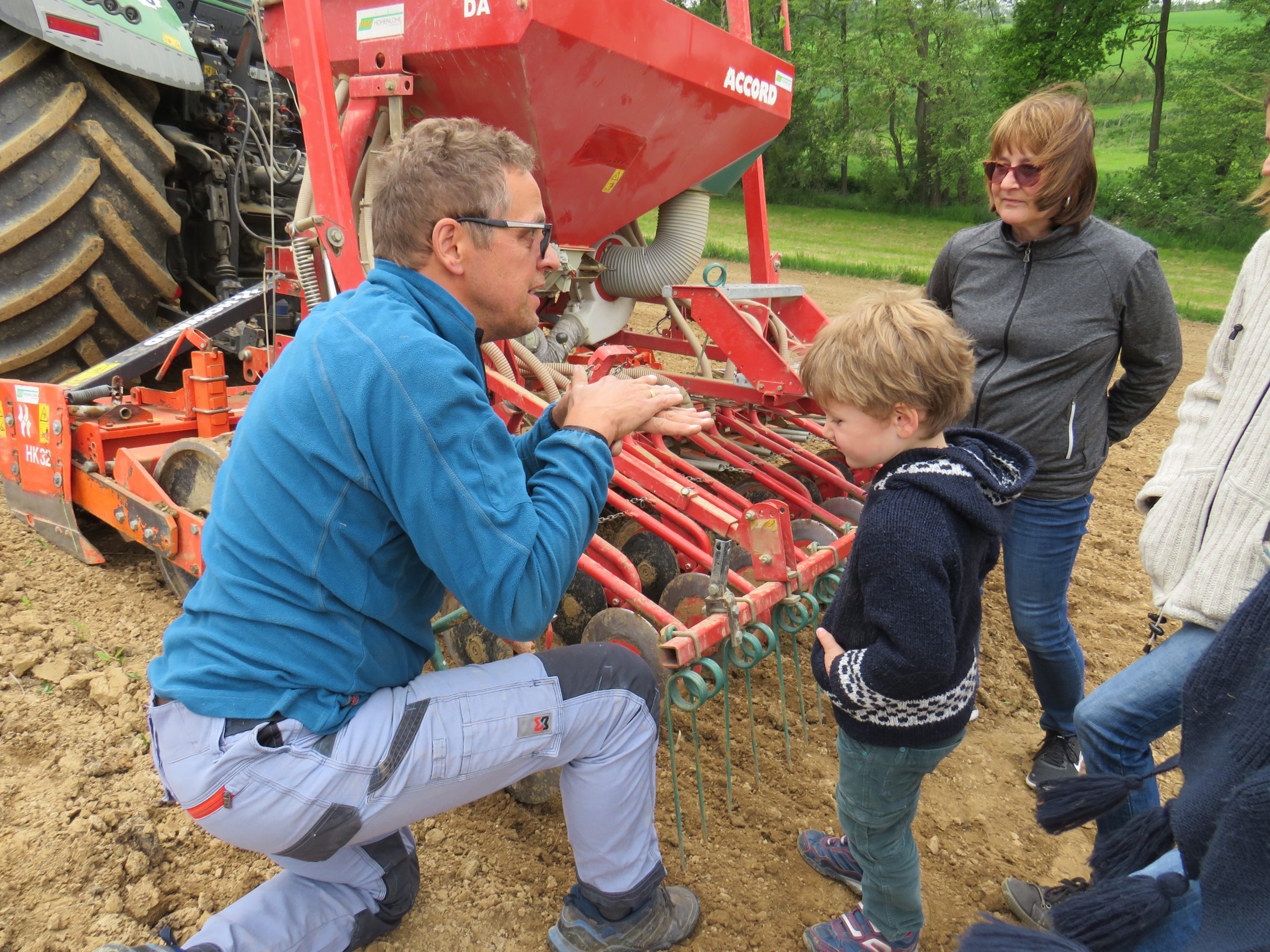 Doch das wird sich auf der Großhirschbacher Blühpatenwiese dank dem Engagement der Paten nun bald ändern. Noch am gleichen Tag sät Thomas Karle die Veitshöchheimer Bienenweide aus, eine Mischung speziell abgestimmt für Wild- und Honigbienen, die aber auch für alle übrigen Insekten und Kleintiere eine gute Nahrungsquelle sein wird. „Wenn alle anderen Wiesen abgemäht sind und drumherum nichts mehr blüht, wird unsere Blühpatenwiese erst so richtig loslegen“, ist Andreas Grathwohl, der Vorsitzende des Imkervereins, begeistert. Zusammen mit Rainer Schweizer, der die Bienenvölker am Rande der Blühwiese betreuen wird, plant er bereits, die Blühpaten zu kreativen Aktionen rund um den Lebensbereich Wiese einzuladen. Schließlich sei es nicht selbstverständlich, dass ein Landwirt auf die konventionelle Bewirtschaftung seines Feldes und die damit verbundenen Subventionen vollständig verzichtet, um diese Fläche mit Hilfe des bürgerschaftlichen Engagements extensiver zu bewirtschaften. „Die riesige Nachfrage ist vor allem auch eine Ermutigung für andere Landwirte, neue Wege auszuprobieren, die die Natur wieder stärker in den Mittelpunkt stellen“, findet der Vorsitzende der hiesigen Imker. Und wie sehr diese Haltung von den Hohenlohern mitgetragen wird, zeigen die vielen unterschiedlichen Blühpaten: von den Kleinsten, die Neuensteiner Grundschüler, über die Kupferzeller Jugendfeuerwehr bis hin zur Seniorin, die ihren Beitrag für eine blühende Umwelt ihrer Enkelin leisten will. Berührt hat Thomas Karle aber auch die Idee eines Mannes, seiner Mutter zum Muttertag keine Blumen, sondern eine ganze Blumenwiese zu schenken. Und so ist für den umtriebigen Landwirt, der in Füßbach bereits das e-Car-Sharing-Modell ins Leben gerufen hat, schnell klar, dass er für die bisher leer ausgegangenen Blühpaten einen weiteren Flächenabschnitt neben der bereits eingesäten Wiese ausweisen wird. „Wir können noch bis zum 31. Mai Blühpaten annehmen. Nach diesem Termin wird es sonst mit der Aussaat zu spät!“ Wer also noch eine Fläche von ca. 240 m² für zwei Jahre und einem Beitrag von 2,50 € im Monat zum Blühen bringen möchte, darf nicht zu lange warten.